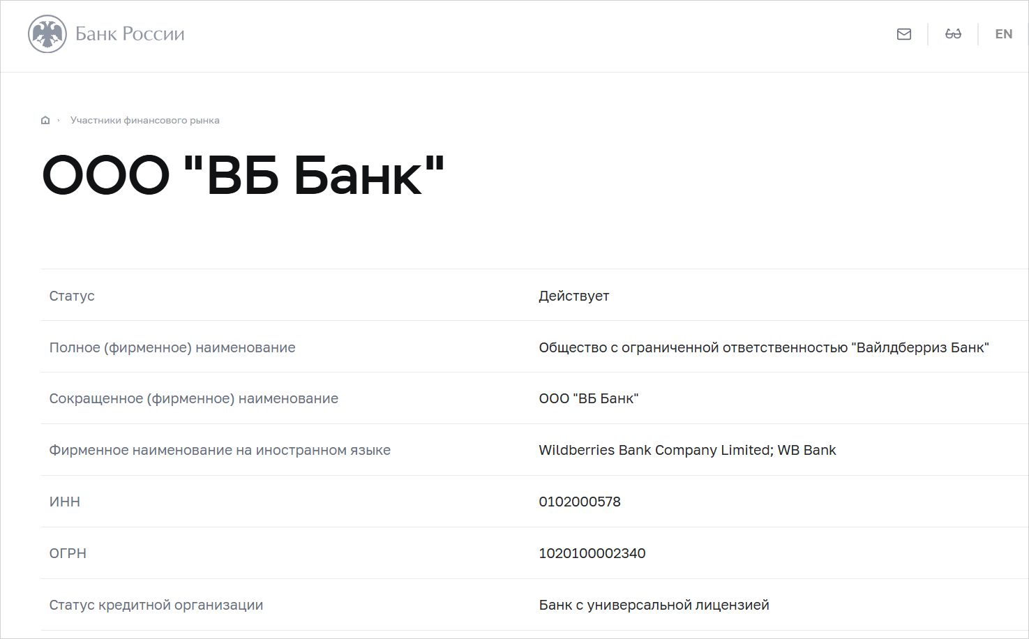 WB Кошелек и карту «Вайлдберриз» выпускает и обслуживает собственный банк экосистемы — ВБ Банк (ООО «Вайлдберриз Банк», лицензия ЦБ № 841).