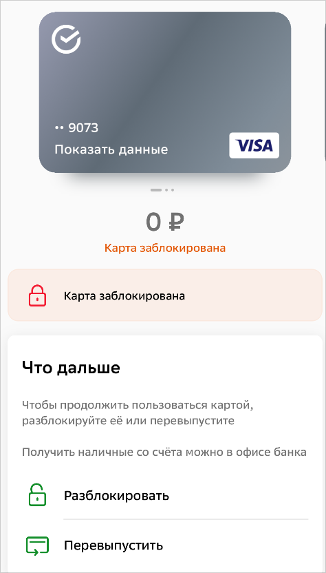 Иногда необходим перевыпуск карты (его можно легко оформить через «Сбербанк Онлайн»). В других случаях снять деньги можно в кассе по паспорту.