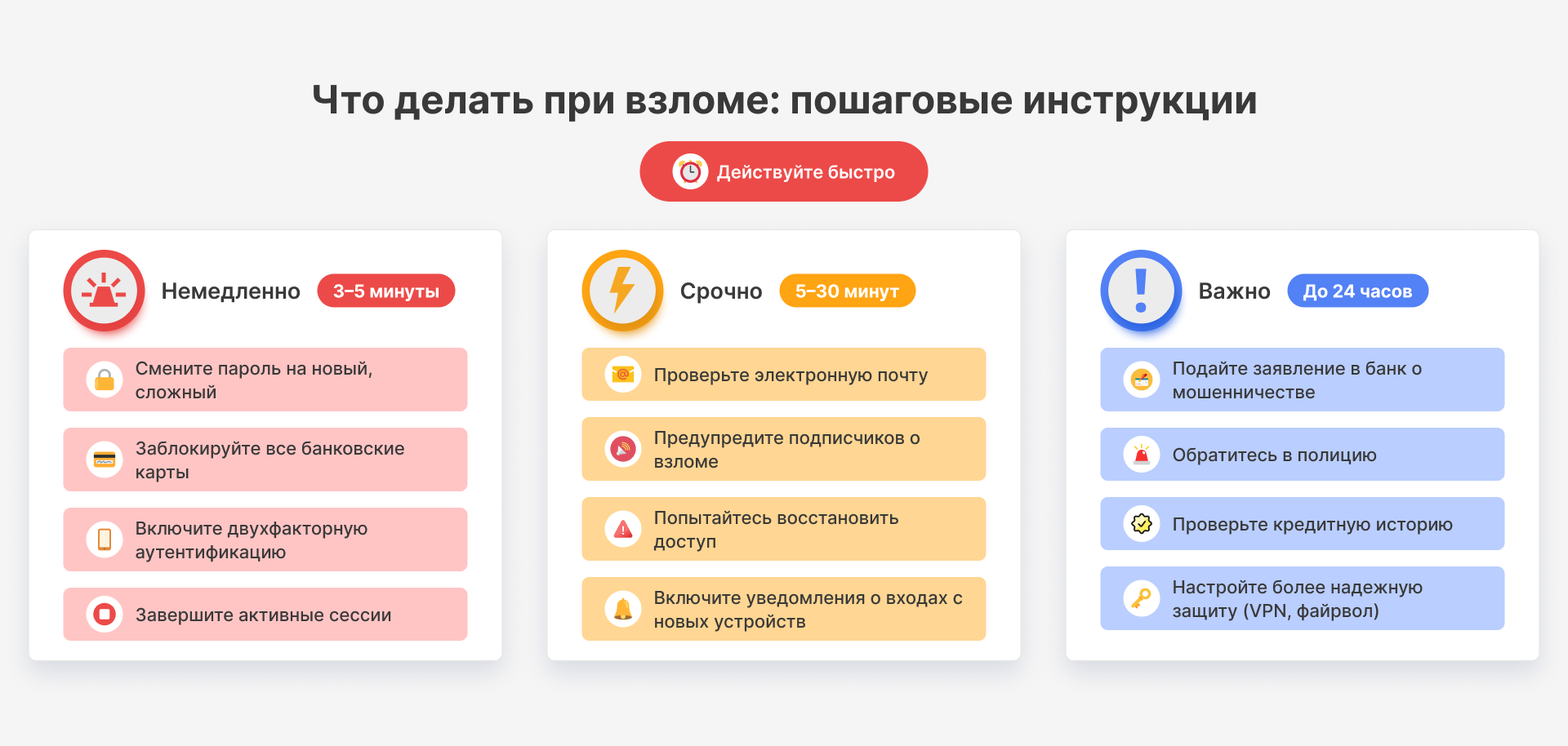 Если к взломанному аккаунту привязана банковская карта, необходимо ее заблокировать. Это можно сделать через приложение банка или по телефону горячей линии.
