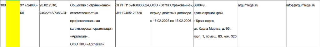 Напоминаем: по состоянию на начало 2026 года ПКО «Арглегал» отмечено желтым индикатором, что указывает на наличие нарушений со стороны коллекторов.
