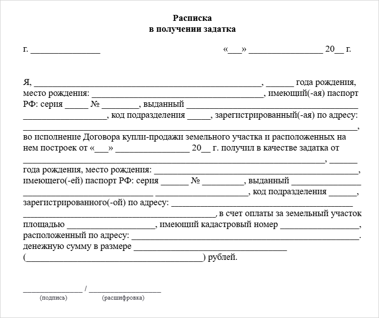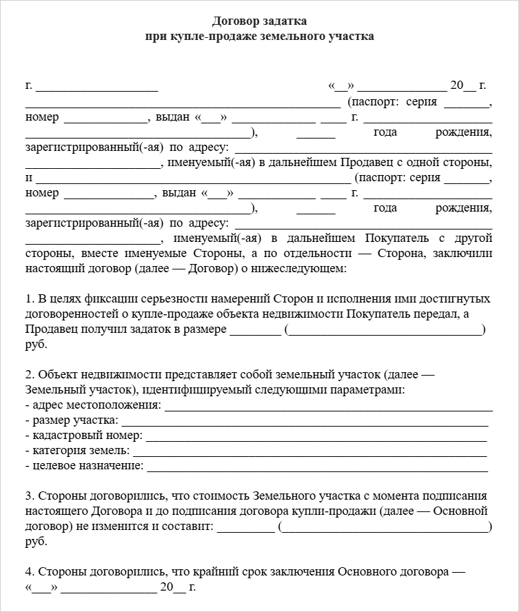 Задаток остается у продавца, когда сделка срывается по вине покупателя. Например, если он отказался заключать договор купли-продажи или не смог вовремя оплатить оставшуюся часть стоимости земельного участка.