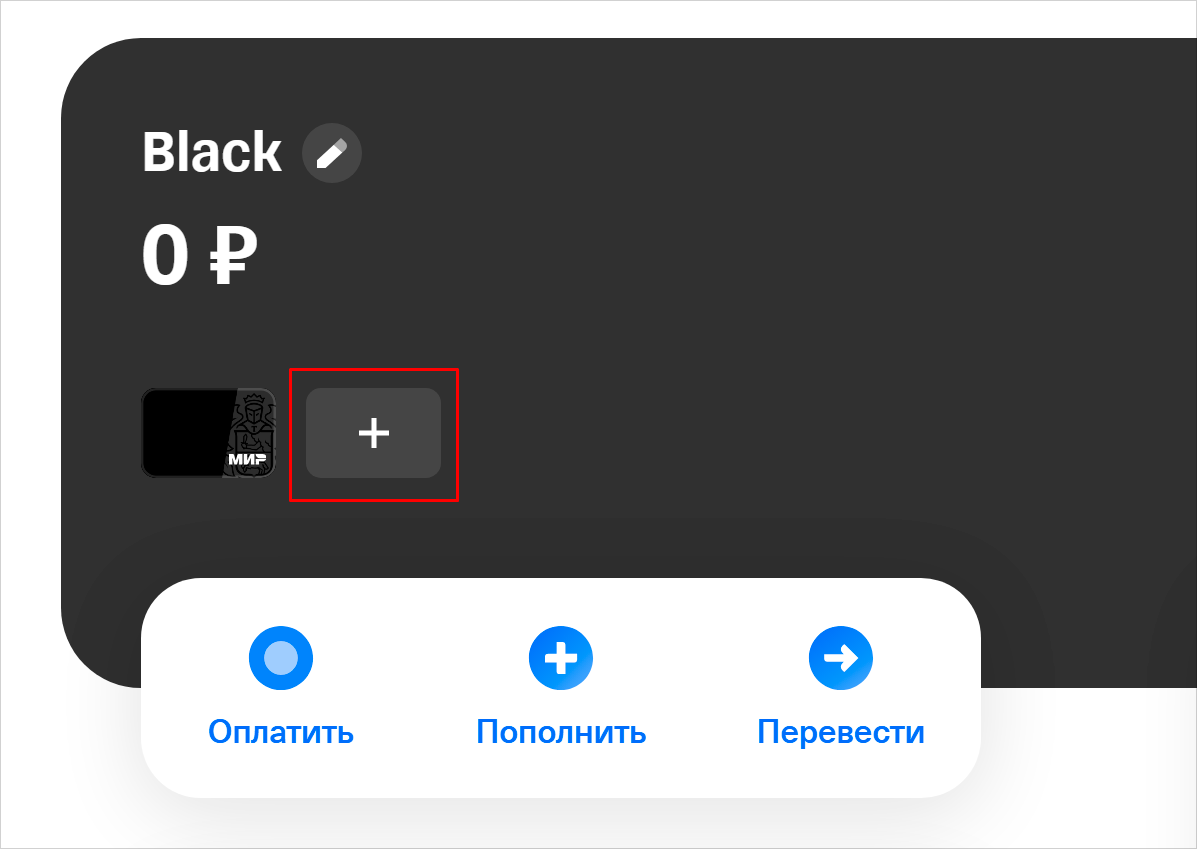 Шаг 3. Нажмите на «+» под балансом карты.