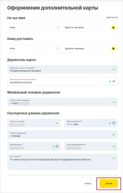 Если планируете передать дополнительную карту другому человеку, сразу оформляйте ее на третье лицо. Иначе это будет похоже на несанкционированный доступ к чужой карте, и при ее использовании могут возникнуть проблемы.