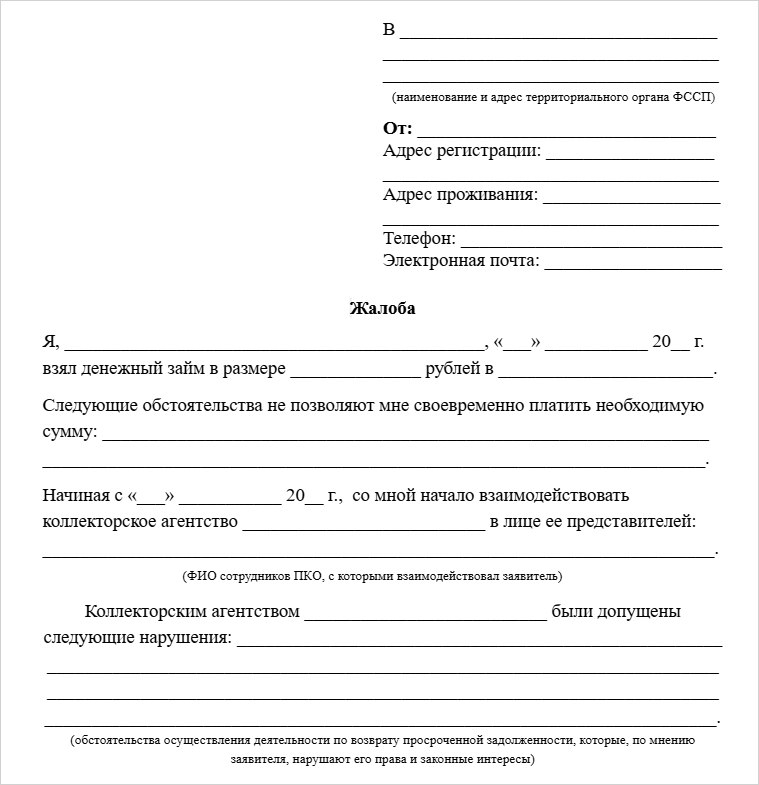 В Федеральную службу судебных приставов можно жаловаться на любые нарушения коллекторов. Например, если они грубят, рассказывают о вашем долге посторонним, отказываются представляться или нарушают частоту звонков.