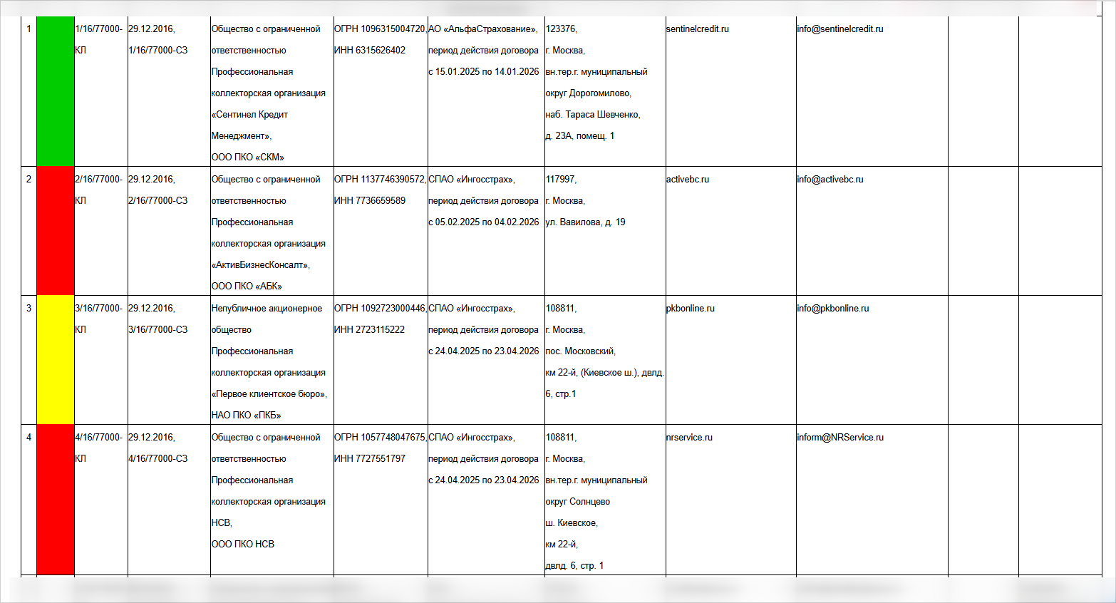 Агентства в реестре распределены по уровню риска. Красный цвет — высокая категория риска, зеленый — низкая