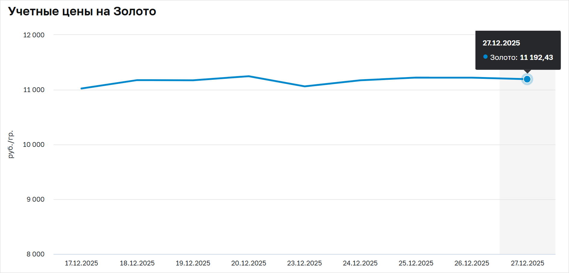К началу 2026 года учетная стоимость золота составляет 11 192 рубля за грамм
