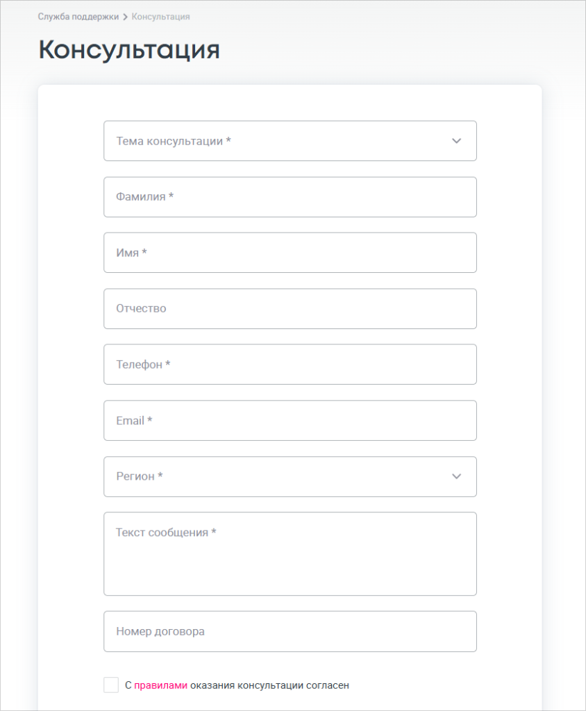 - Номер договора, если есть.