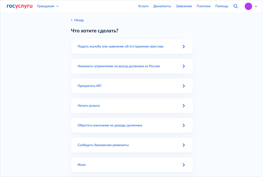На портале работает специальный сервис — «Подача заявлений и ходатайств в ФССП». С его помощью можно быстро составить ходатайство: