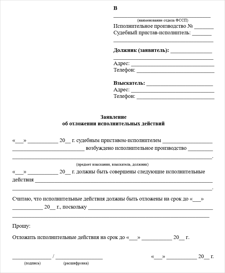 Отложении исполнительных действий