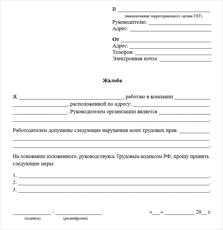 - Отправить заказным письмом — на адрес инспекции труда вашего региона.