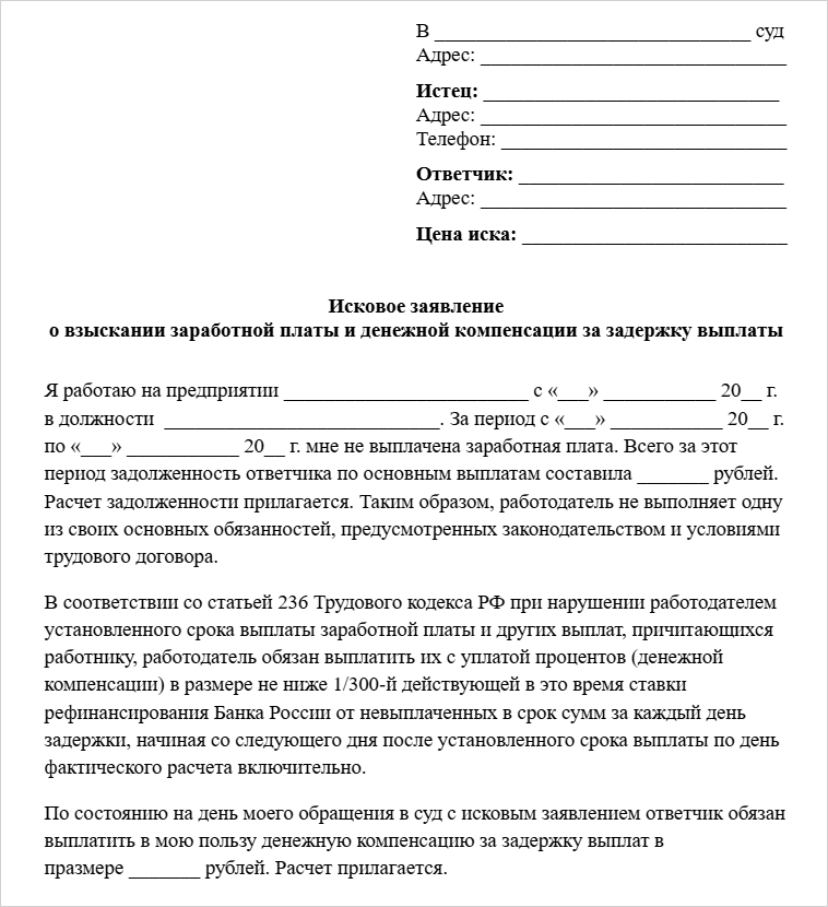 Если работодатель задерживает заработную плату, ее можно взыскать в суде. В этой статье: пошаговая инструкция, как правильно составить и подать исковое заявление.