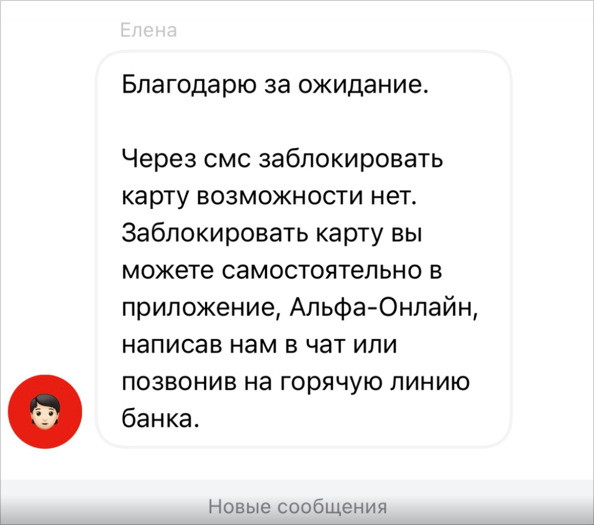 - Напишите: «Хочу заблокировать карту» или просто «Блокировка карты».