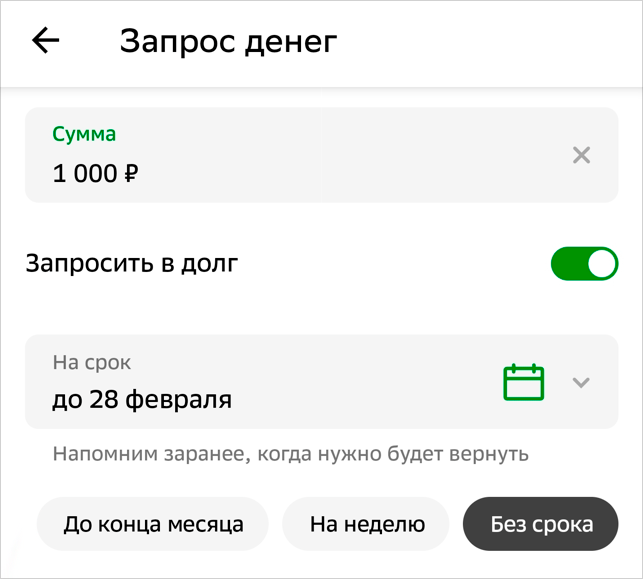 И получатель, и отправитель должны быть клиентами Сбера. Если хотите попросить в долг у человека, который пользуется счетом другого банка — придется позвонить или написать в обычном мессенджере, а не в банковском приложении.
