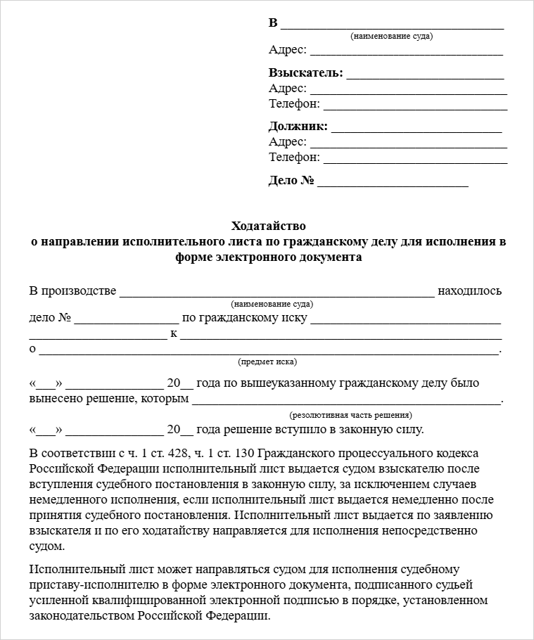 Единственный способ передать исполнительный документ онлайн — через суд. Но здесь достаточно подать ходатайство, а все остальное происходит без вашего участия: суд направляет электронный исполнительный лист напрямую в службу судебных приставов.