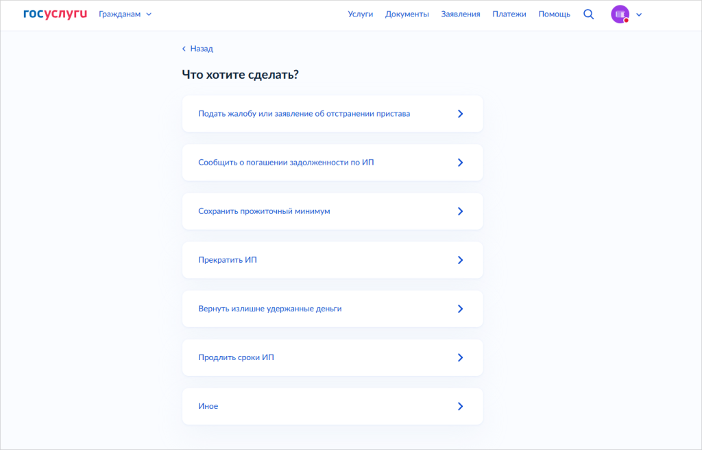 Какие заявления можно подать приставам через Госуслуги