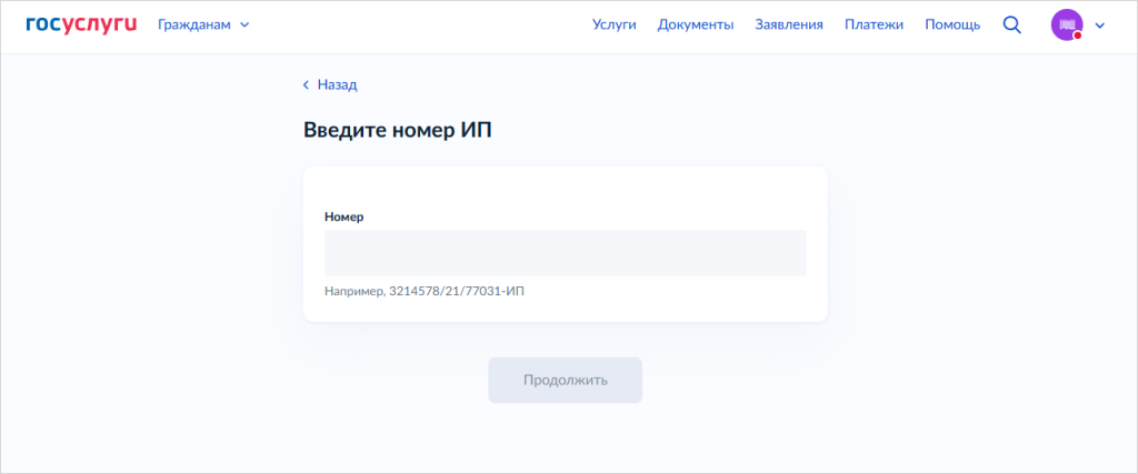 - Выберите из перечня конкретное исполнительное производство или укажите номер ИП, если его нет в списке.