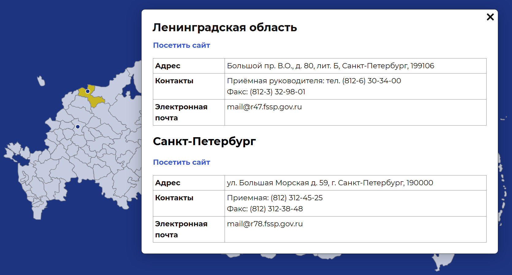 Многие отделы ФССП указывают в контактных данных адреса электронной почты.