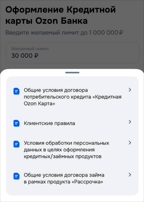 Какие документы нужны для оформления кредитки «Озон»