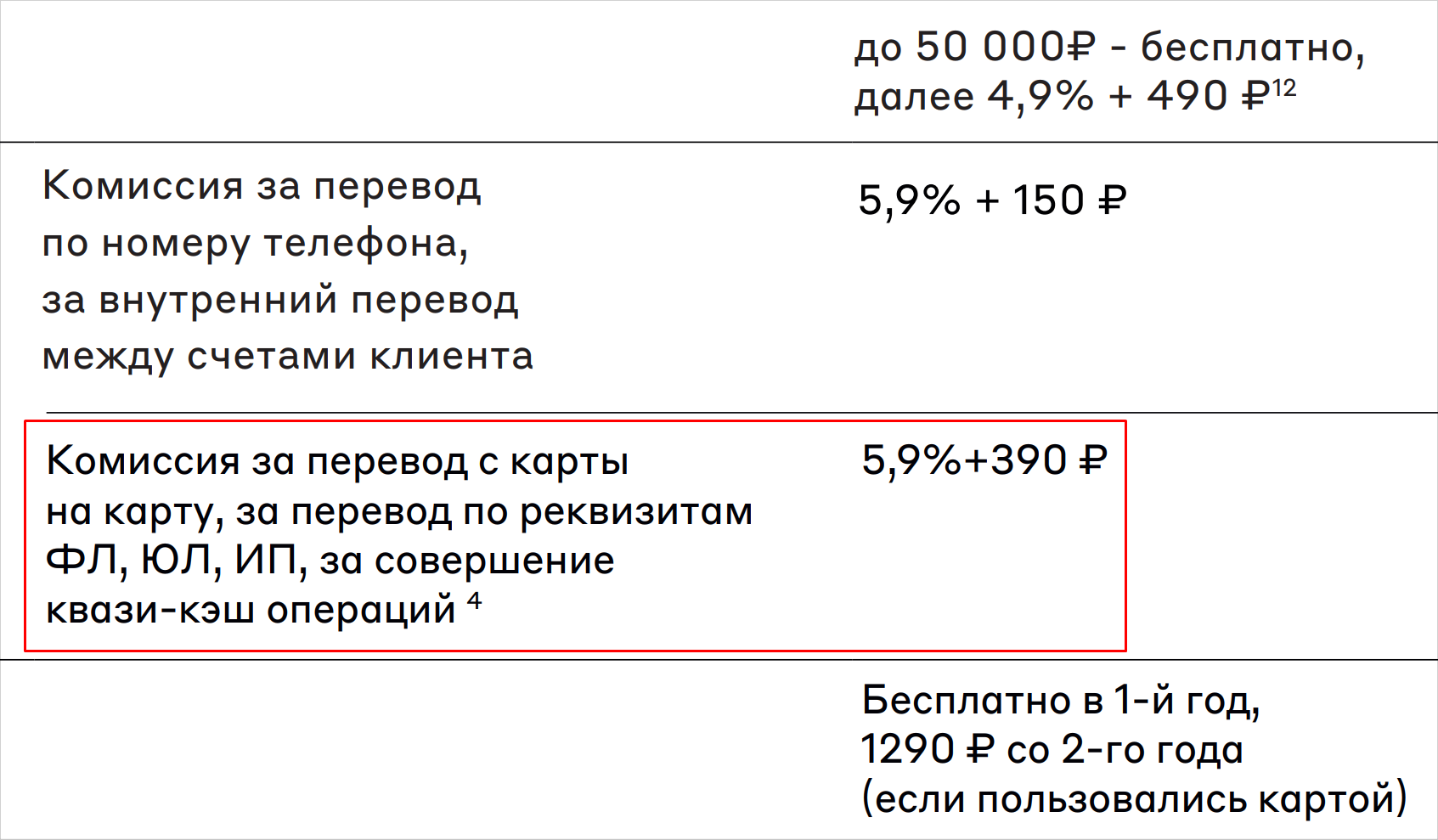 Важно: счет кредитной карты лучше не использовать для прямых переводов по QR-коду другому клиенту Альфа-Банка. Такая операция не считается покупкой, поэтому за нее будет списана стандартная комиссия: 5,9% от суммы перевода плюс 390 рублей.