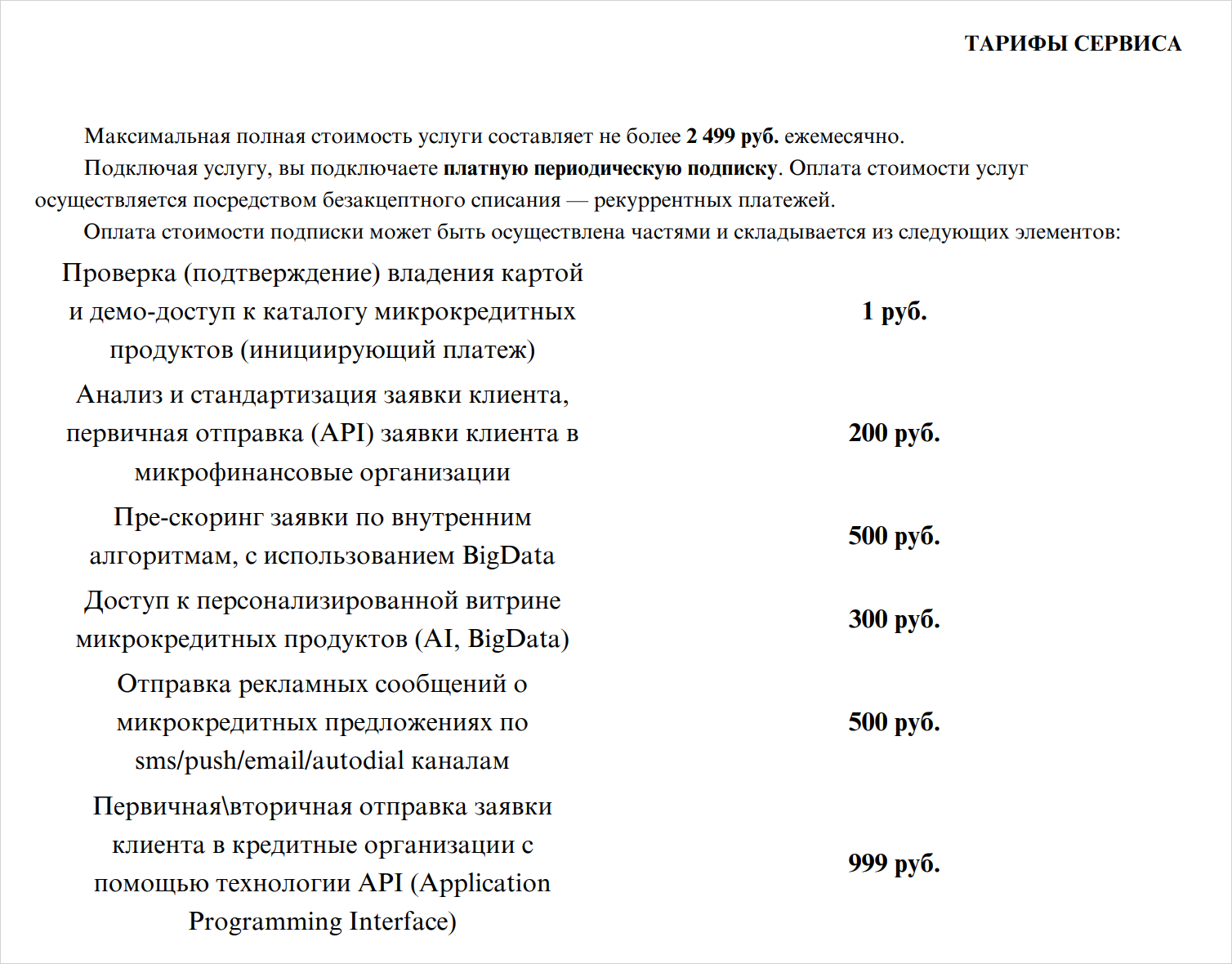 Стоимость подписки — 2 499 рублей в месяц. Деньги могут списывать сразу одной суммой или частями в несколько платежей подряд. Это связано с тем, что каждая услуга внутри подписки имеет отдельную стоимость, а общая сумма в месяц не превышает 2 499 рублей. Тарифы такие: