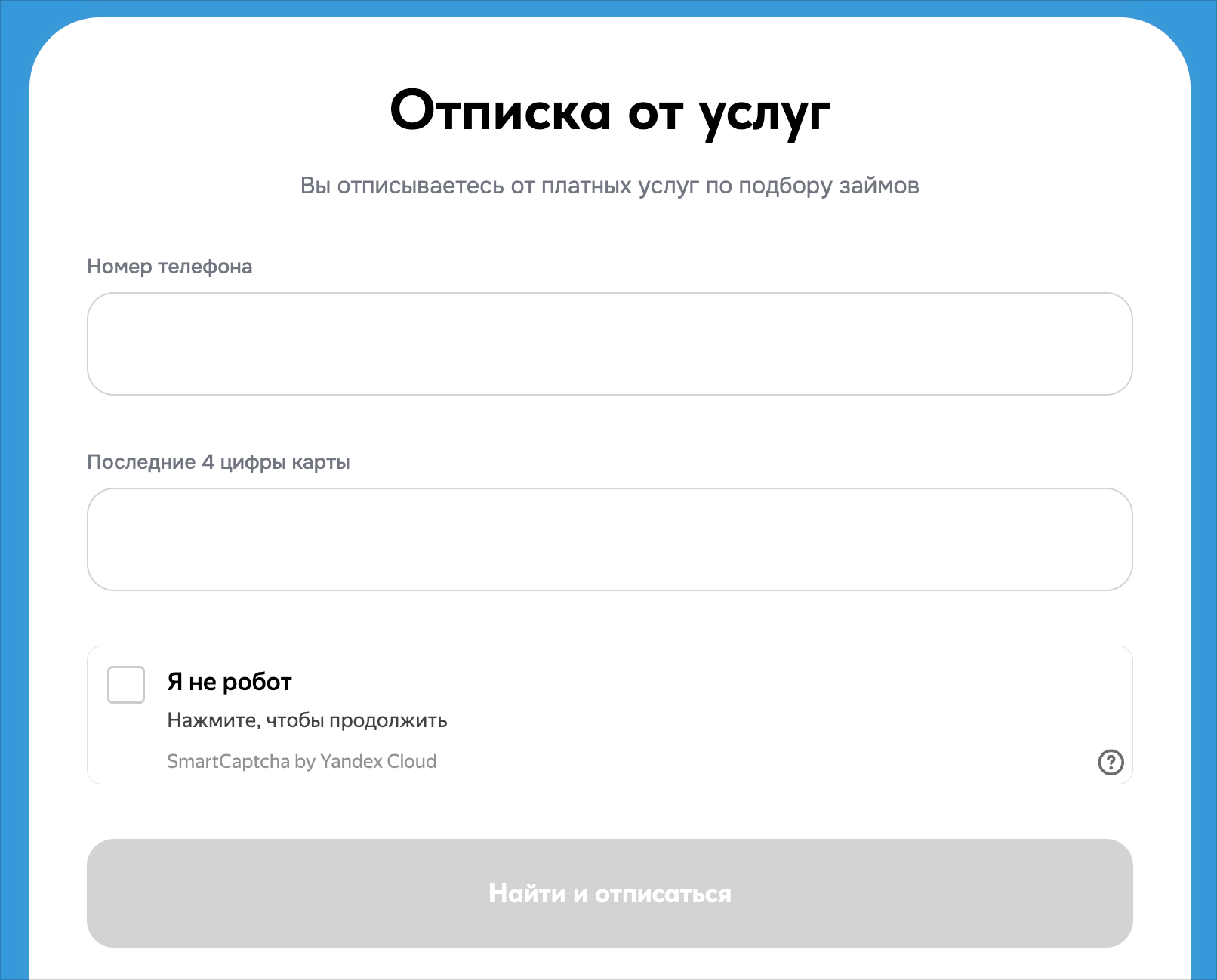 Все услуги на сайте — платные. Об этом открыто предупреждают при регистрации. Если пользователь вводит номер телефона, данные своей банковской карты и подтверждает согласие галочками, он автоматически заключает абонентский договор. Следовательно, соглашается на ежемесячную платную подписку и условия сервиса — независимо от того, получит он займ или нет.
