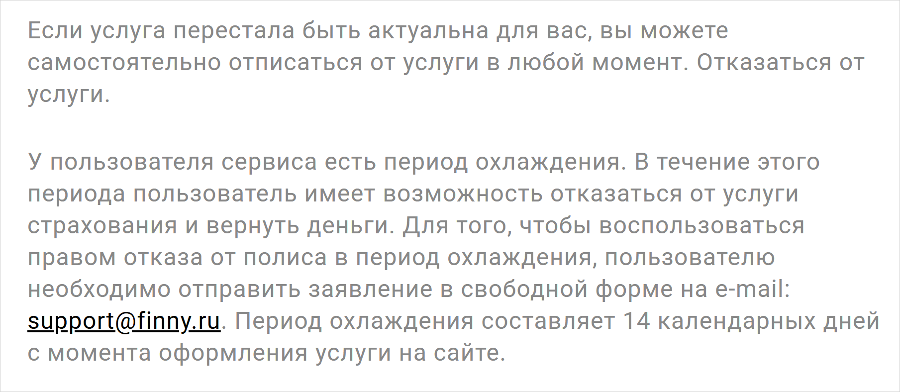 Если подписка уже подключена и сервис успел списать деньги с карты, можно попробовать их вернуть. Для этого действует период охлаждения — время, когда вы можете отказаться от страховки и запросить возврат. Такой период длится 14 календарных дней с даты оформления услуги.