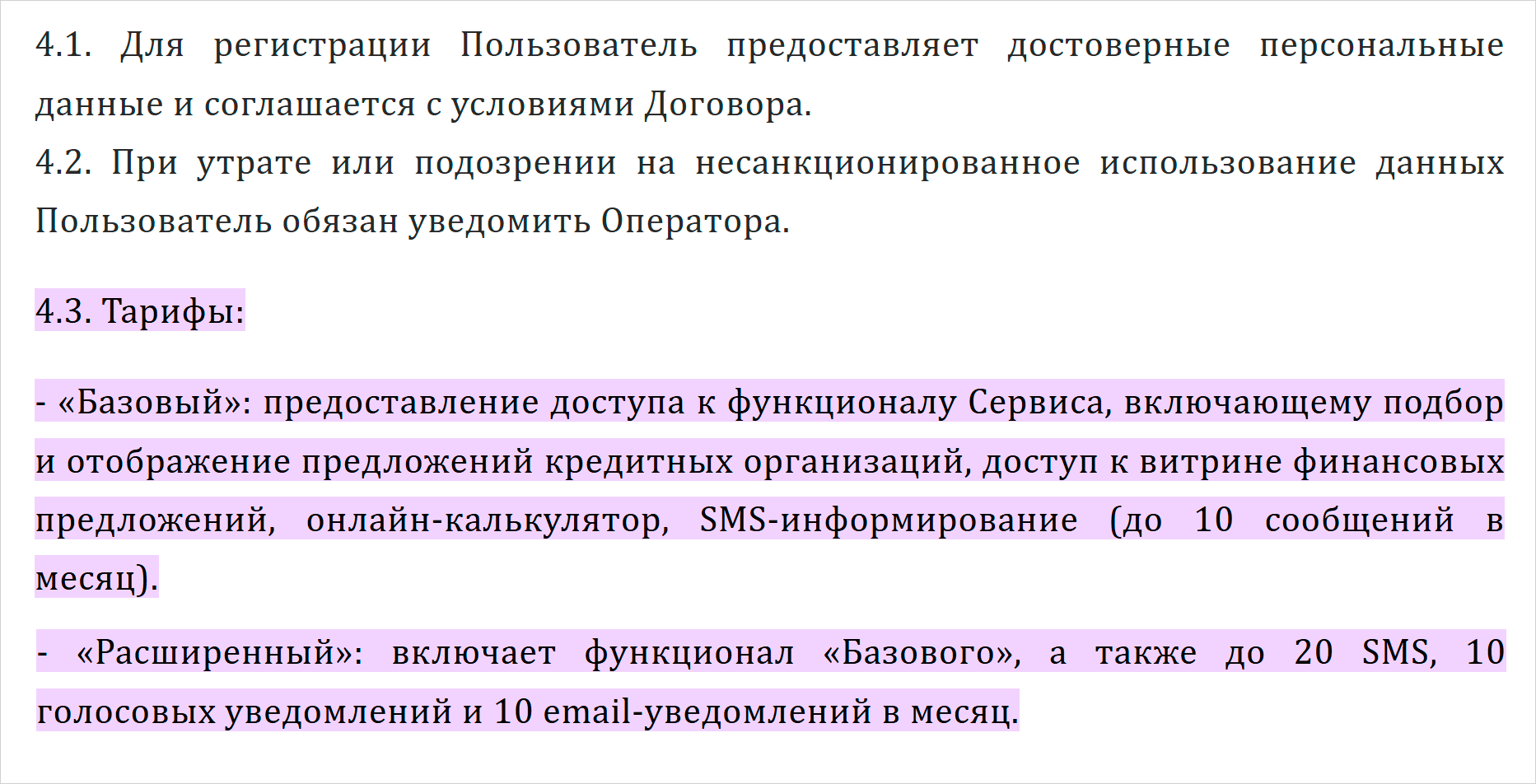 Тариф «Базовый» — 2 000 рублей в месяц. Доступ к витрине займов, подбор предложений и до 10 смс-уведомлений.