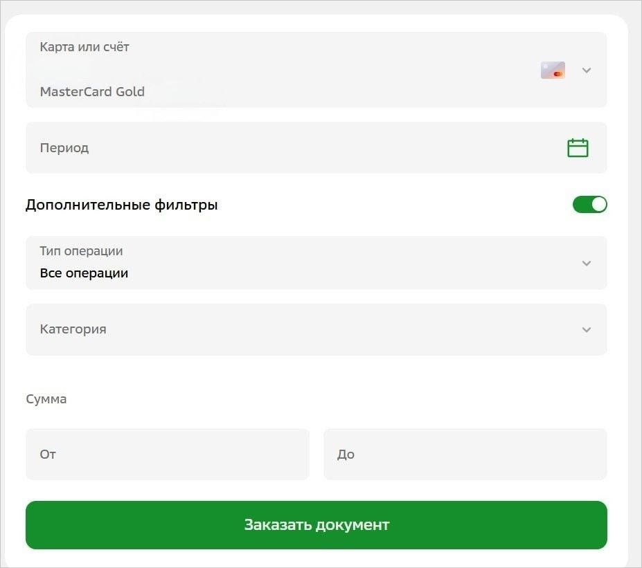 - Нажмите «Заказать документ». Выписка из онлайн-банка сформируется моментально.