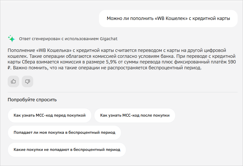 Разобраться, попадает ли покупка под беспроцентный период в Сбербанке, помогает GigaChat