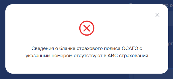 | «Аннулирован», «Испорчен», «Украден», «Утратил силу» | Вероятно, у вас на руках поддельный полис ОСАГО. Он недействителен, пользоваться им нельзя | Не пользуйтесь — обратитесь в страховую компанию, РСА или в полицию при мошенничестве |