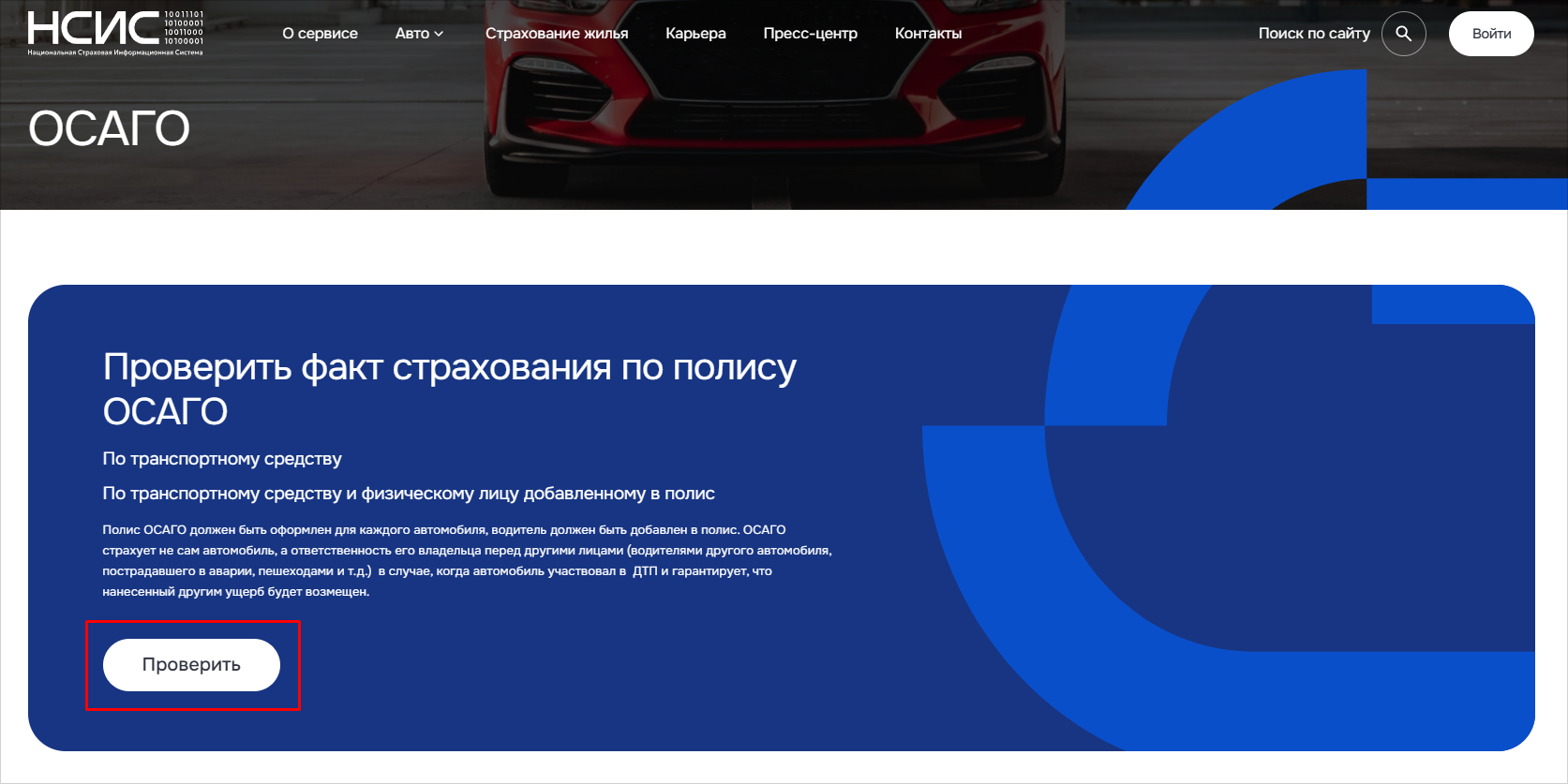 С 1 октября 2024 года проверить подлинность полиса ОСАГО онлайн можно только на сайте Национальной страховой информационной системы (НСИС) — nsis.ru. Все официально: АО «НСИС» является на 100% дочерним предприятием Банка России. Дополнительно статус полиса можно проверить на сайте страховщика, который выдал его, но даже туда информация поступает из базы НСИС.