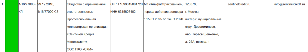 В реестре коллекторских агентств ООО «СКМ» отмечено зеленым цветом, что говорит о том, что за последнее время сотрудники компании не допускали нарушений в отношении должников.