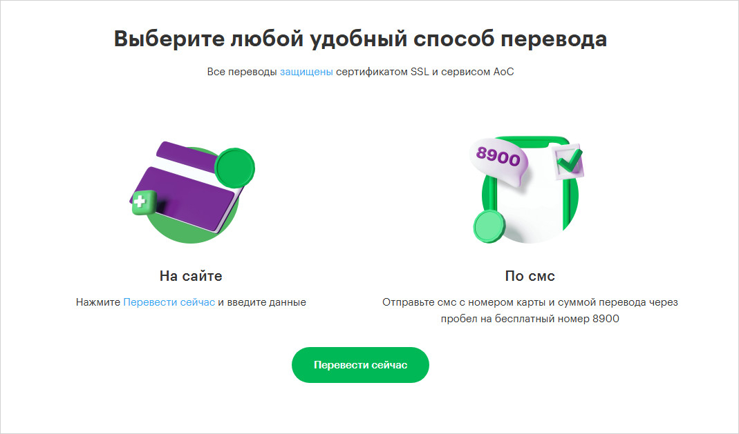 У оператора есть три основных способа для переводов: через приложение, сайт и смс.