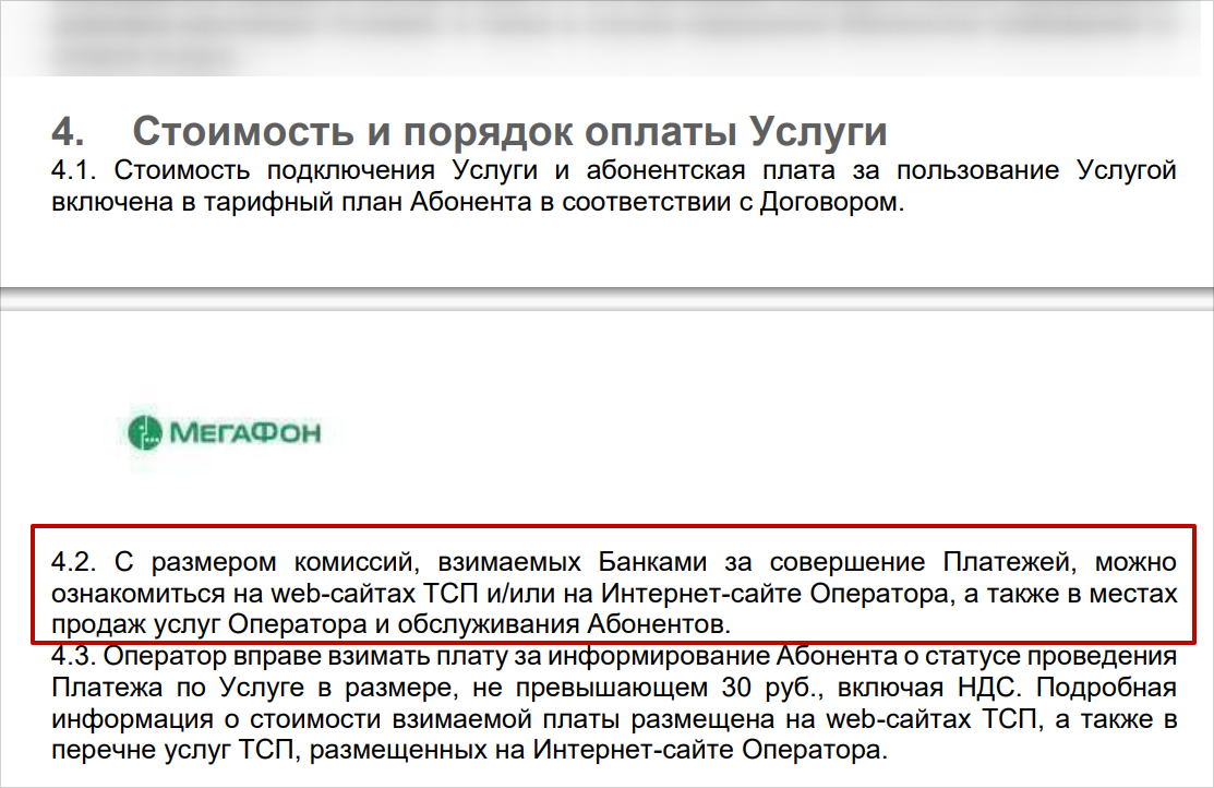 Перевод со счета «МегаФона» на карту без комиссии недоступен. Все способы платные. Комиссия появляется не из-за банка получателя, а за саму услугу перевода. Стоимости услуги посвящен четвертый раздел Оферты.