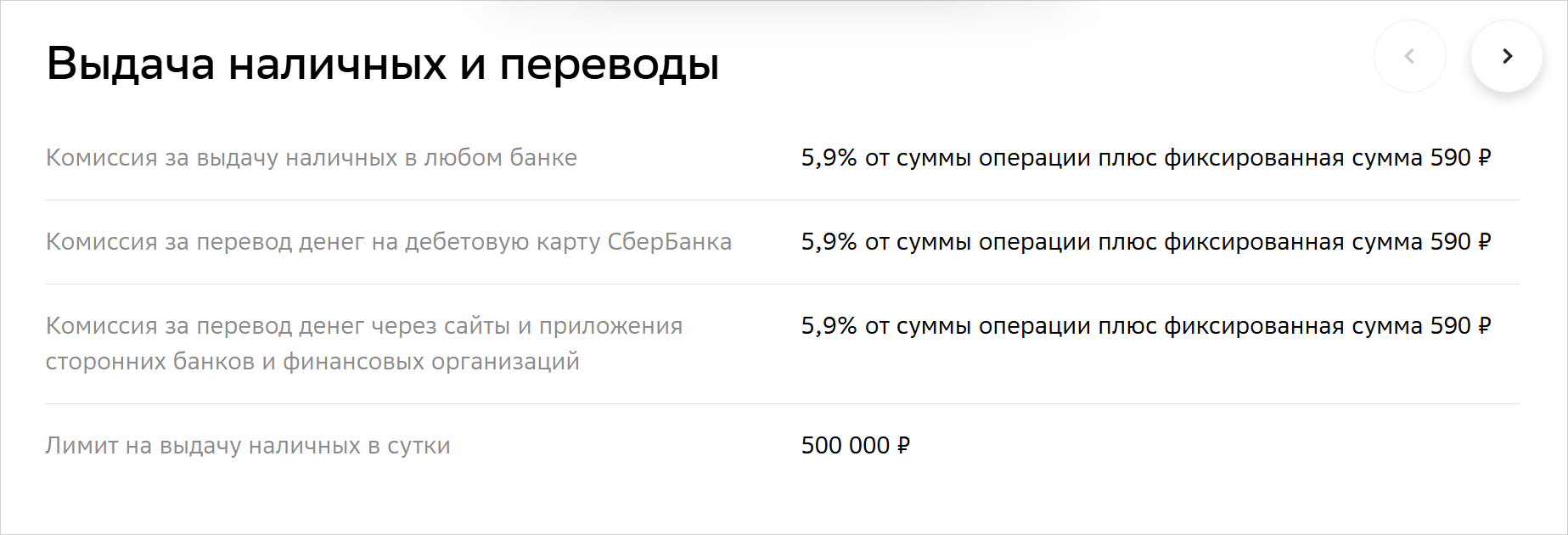 Размер комиссии за снятие наличных
