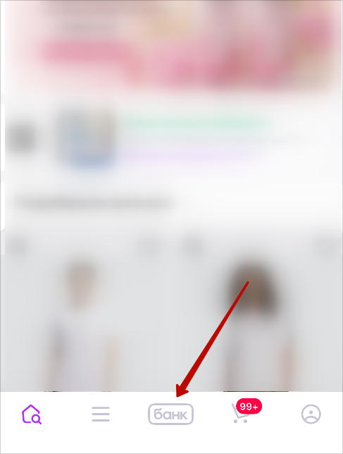 Откройте мобильное приложение «Вайлдберриз» (Wildberries) и выберите раздел «Банк» — он располагается в нижнем меню.
