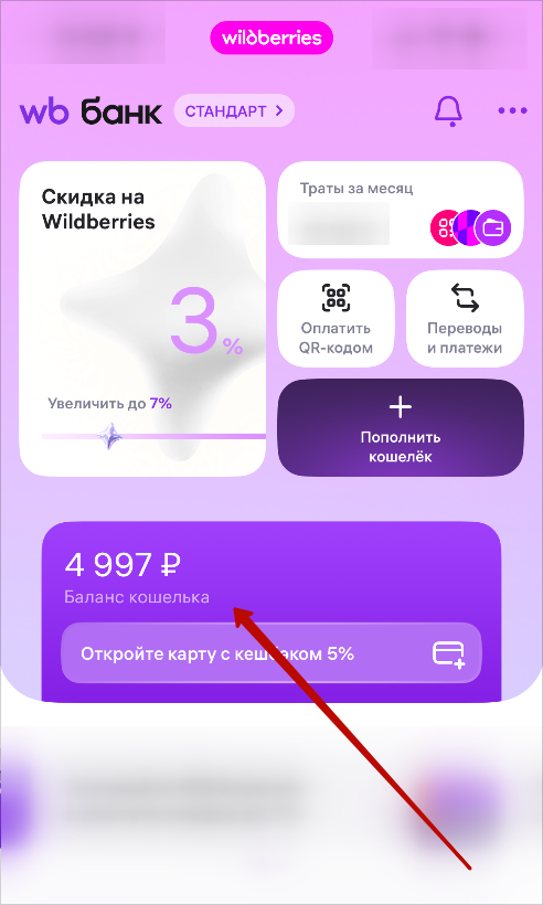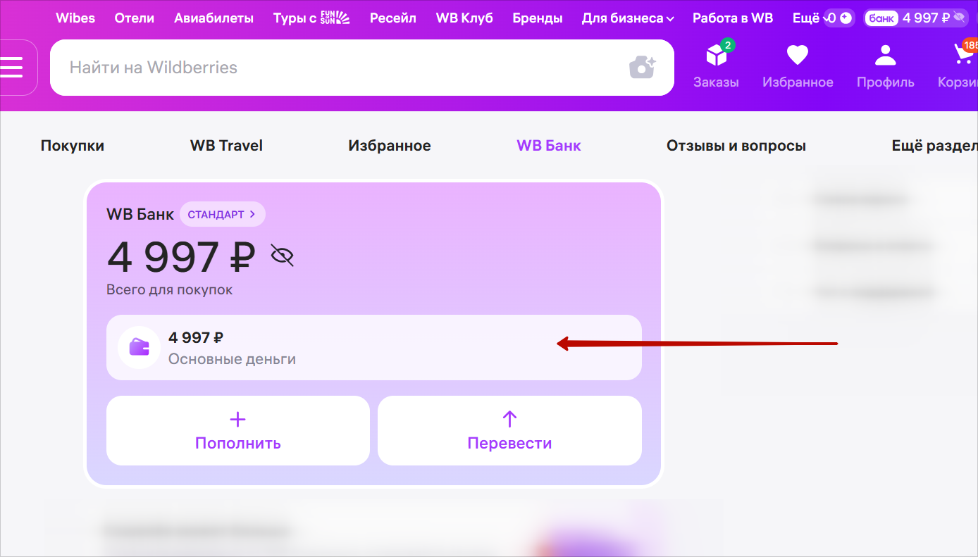- В разделе «WB банк» выберите «Основные деньги».