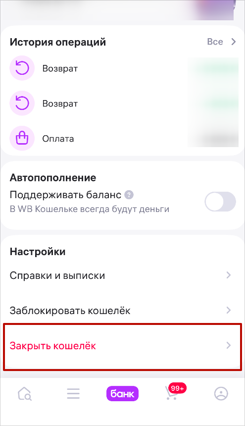 Как закрыть ВБ Кошелек пошагово
