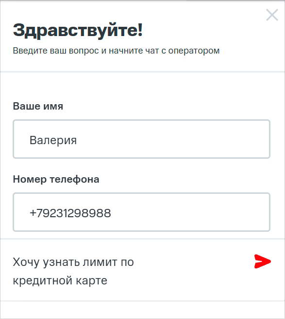 Если не получилось проверить лимит, напишите в чат онлайн-банка. Чтобы отправить сообщение в чат без авторизации на сайте, введите свое имя и номер телефона, а затем задайте вопрос.