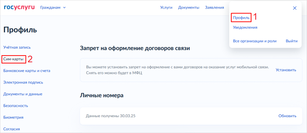 Где в Госуслугах находятся SIM-карты?