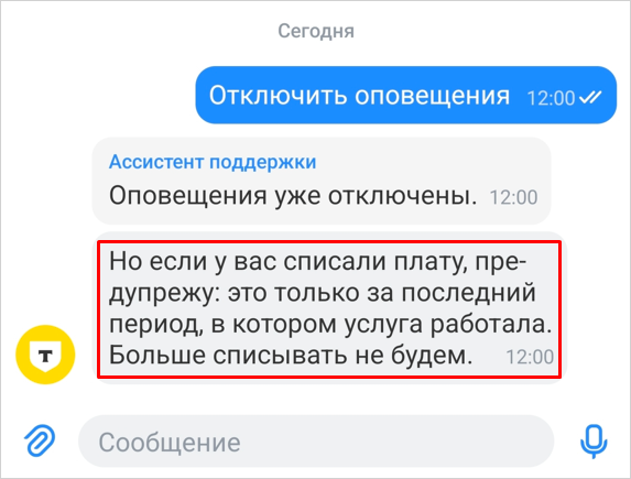 Услугу платных оповещений можно отключить в любой момент.