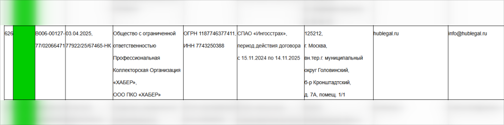 ООО ПКО «Хабер» — это профессиональная коллекторская организация. Она существует с 2018 года, но в качестве коллекторской фирмы работает относительно недавно — компания включилась в государственный реестр коллекторских агентств только в апреле 2025 года.