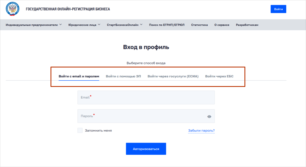 Для входа в личный кабинет ИП также понадобится подтвержденная запись на Госуслугах. Но если ее нет, авторизацию можно пройти и с другими реквизитами. Из всех личных идентификаторов для прекращения деятельности ИП достаточно знать ИНН или ОГРНИП.