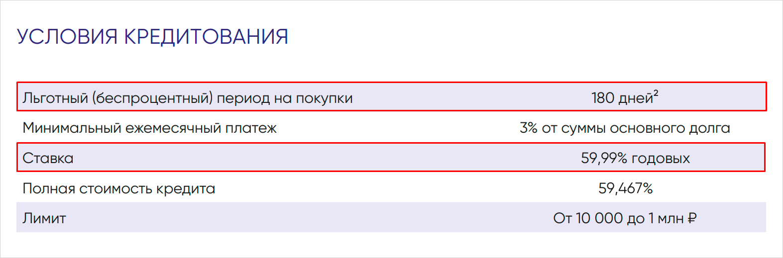 Вы больше не хотите переплачивать и жить в долг. Конечно, у кредитки Промсвязьбанка довольно лояльные условия. Например, беспроцентный период составляет целых 180 дней — из топ-20 столько же только у Совкомбанка и банка «Россия». Однако рано или поздно он закончится, и в дело вступит стандартная процентная ставка — 59,99% годовых.
