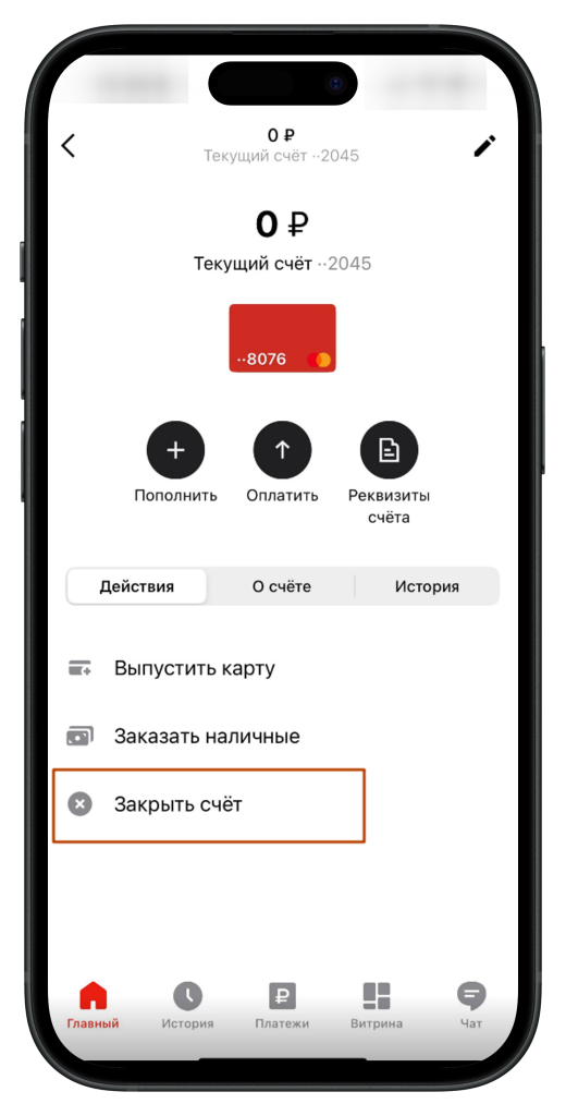 Многие банки позволяют закрывать счета через мобильное приложение. Единственное требование — по счету не должно быть задолженности и исполнительного ареста.