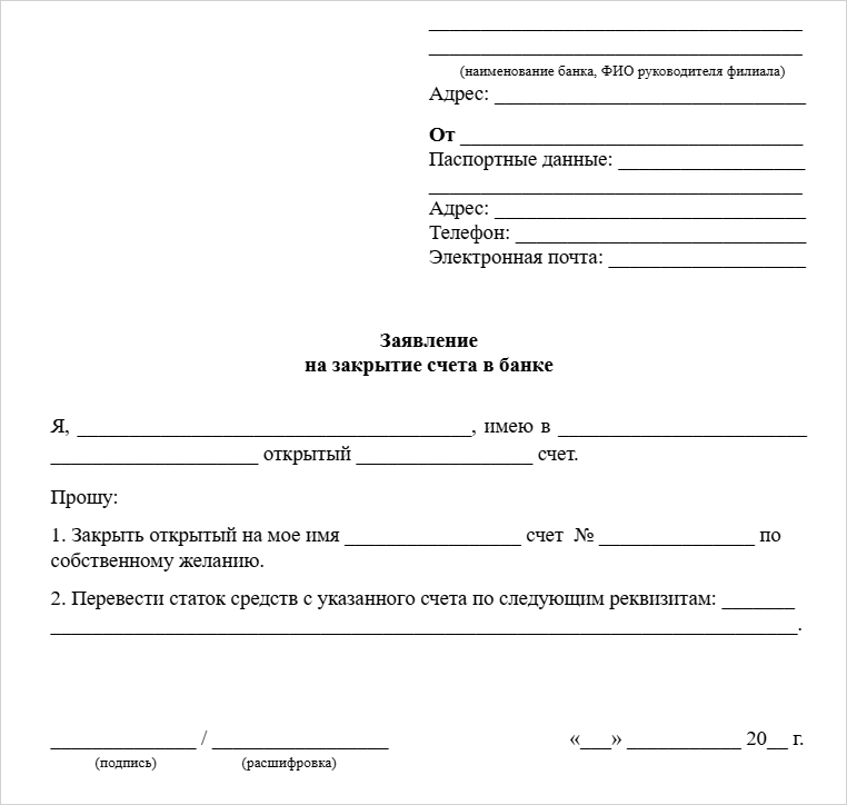 Посетить отделение с паспортом — самый надежный способ закрытия счета, который поддерживают все банки. В заявлении укажите: