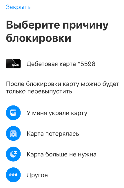 Как и в случае с приложением: блокировка карты не закрывает счет. Поэтому переходите к следующему шагу.