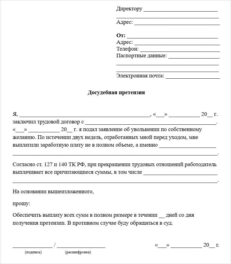 Если претензия не сработала и работодатель так и не рассчитался, можно пожаловаться: