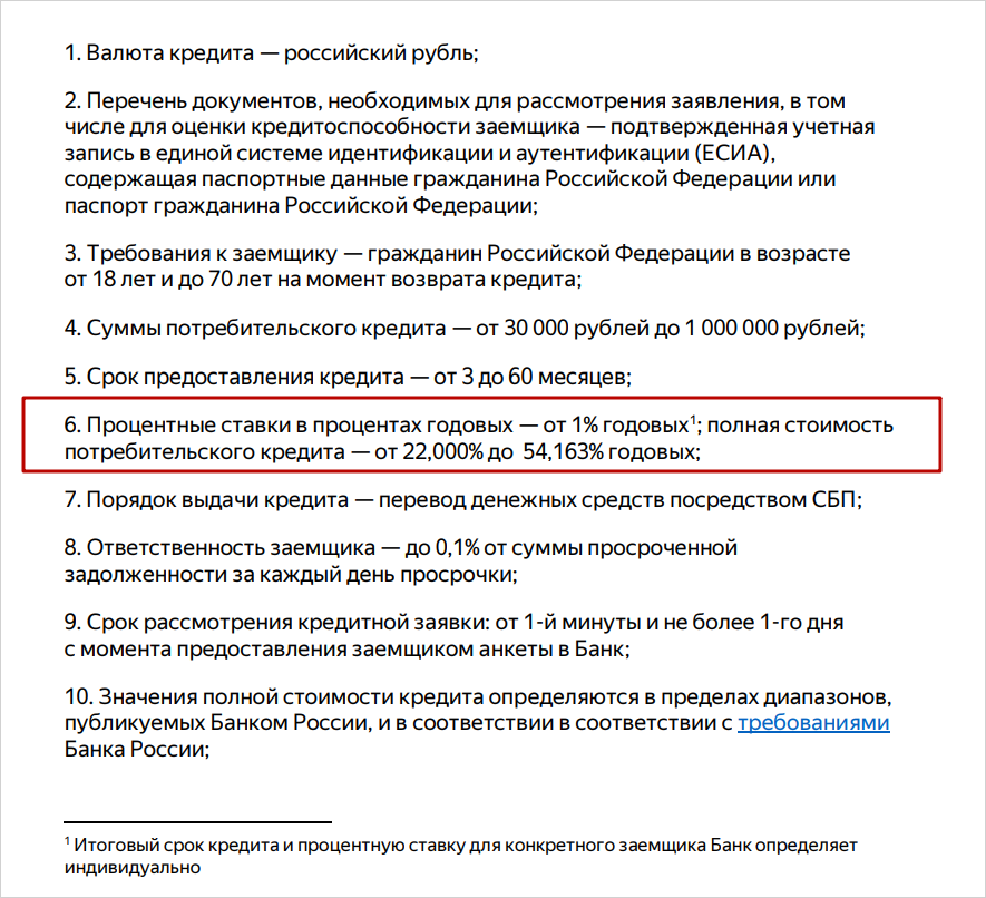 Всё содержаниеНа каких условиях можно получить кредит от Яндекс Банка