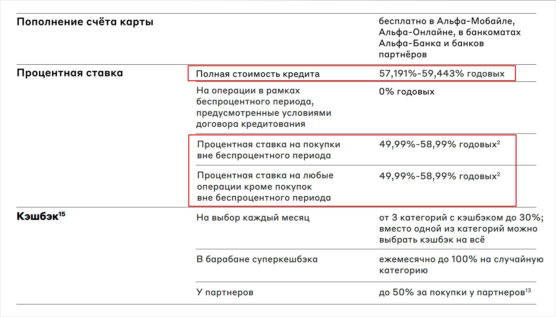 Источник: Тарифы кредитной карты Альфа-Банка